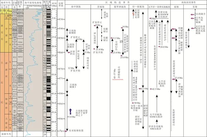 生物地层年代据Lourens et al.2004; 海平面变化曲线据Haq et al.