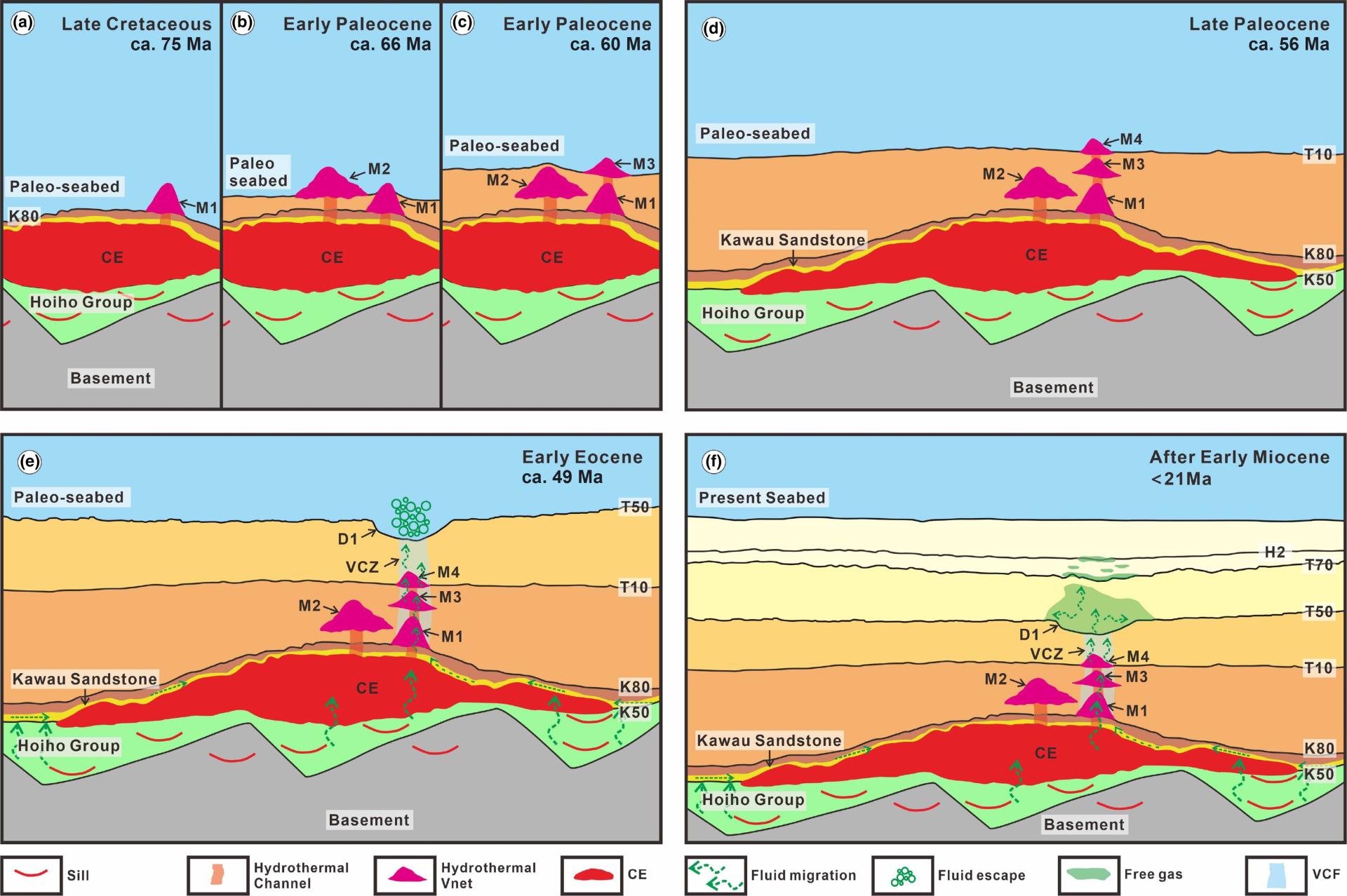 近日,英国上市公司官网365孙启良教授团队在国际著名期刊《Basin Research》和《Tectonophysics》上发表论文,报道了新西兰南岛东南近海大南盆地内裂后期的岩浆活动与热液通道的长期可重复利用的研究成果。这项工作强调了热液通道在岩浆活动研究中的重要作用,不仅为岩浆本身的输运提供路径,也能为盆地内其它流体的运移提供通道。
