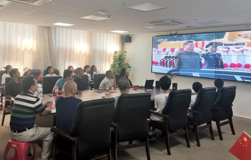 9点30分,在阅兵正式开始之前,公司老师和同学们就提前到达会议室,观看阅兵式之前的准备纪录片。10时,随着悠扬的庆典声响起,阅兵仪式正式开始。首先由中共中央总书记、国家主席、中央军委主席习近平发表重要讲话,随后举行了盛大的阅兵和群众游行。