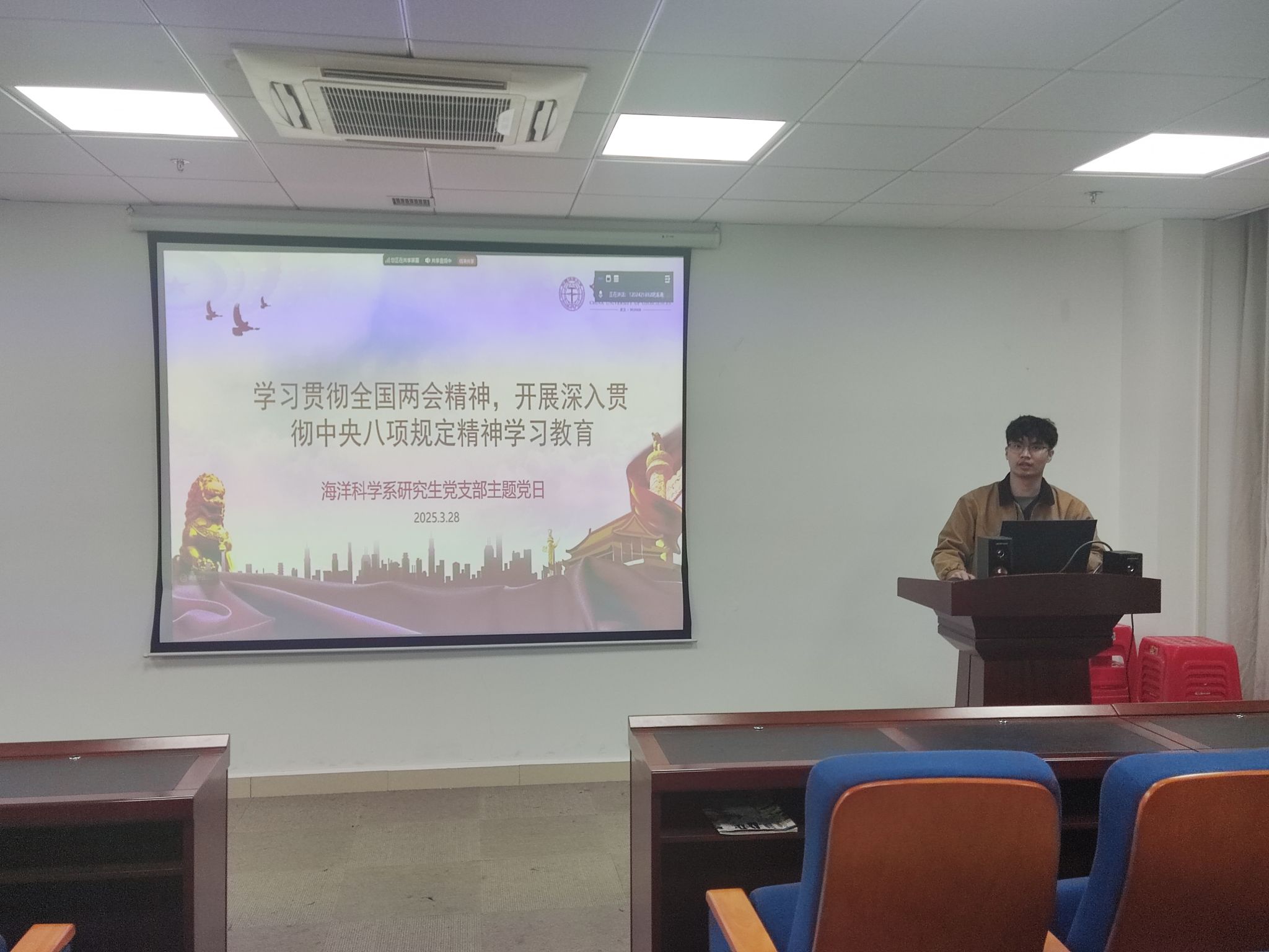 为深入学习贯彻 2025 年全国两会精神,落实中央八项规定精神学习教育部署,本次活动以“学习贯彻全国两会精神,开展深入贯彻中央八项规定精神学习教育”为主题,通过理论学习、问题查摆、实践承诺三位一体模式,引导研究生党员深刻领悟全面从严治党要求,以优良作风投身教育强国建设。