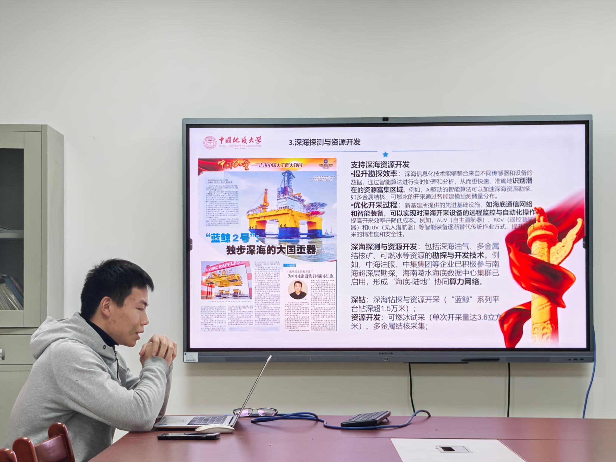 周明亮同志带领党员学习总书记两会期间重要讲话精神,强调海洋学科青年党员要主动对接国家战略需求,将科研创新融入“海洋强国”建设大局,在关键技术攻关中展现担当。