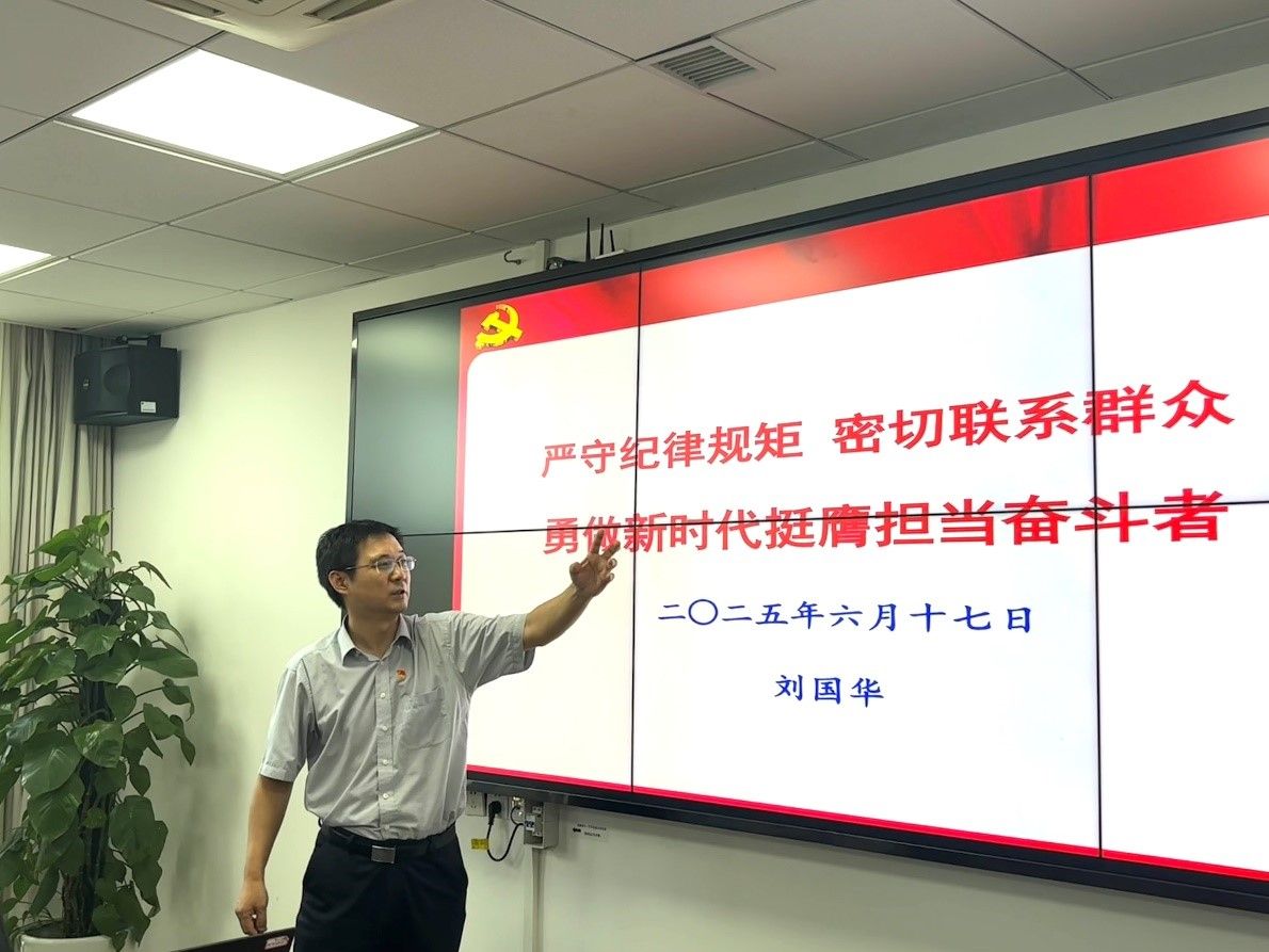 公司党委书记刘国华以《严守纪律规矩 密切联系群众 勇做新时代挺膺担当奋斗者》为题为上党课。他首先播放了《风筝》大结局郑耀先最后的愿望是看一次升国旗的短视频,和与会者讲述了一些老一辈共产党人是如何始终坚守自己的理想信念;他随后解读了中国共产党的纪律体系、规矩体系,要求大家永远牢记入党誓词、党的根本宗旨、党的六大纪律和“四个服从”纪律要求,不论是升学还是就业,此生都必须始终严格把控好自己的思想总开关,真正做一名爱党、爱国、爱学、爱习、爱校、爱岗、爱家、爱己且勇立青春潮头的新时代向上好青年;紧接着他从学习和实践马克思主义关于坚守人民立场的思想、党的宗旨的确立及发展、党的宗旨的深刻含义及时代要求、始终坚持党的群众路线、勇做新时代挺膺担当奋斗者五方面,详细讲明了必须牢固树立人民群众是历史创造者的基本观、坚持全心全意为人民服务的根本宗旨、始终保持同人民群众的血肉联系,他带领大家学习“反四风”“八项规定”主要精神,剖析了各类相关案例,教育引导全体党员向张思德、雷锋、焦裕禄、张桂梅、黄文秀等最具时代影响力的优秀共产党员学习,坚定不移听党话、跟党走,勇于、敢于、善于用脚步丈量祖国大地,在推进强国建设、民族复兴伟业中成为一名信念坚定、品格高尚、脚踏实地、久久为功的时代新人!