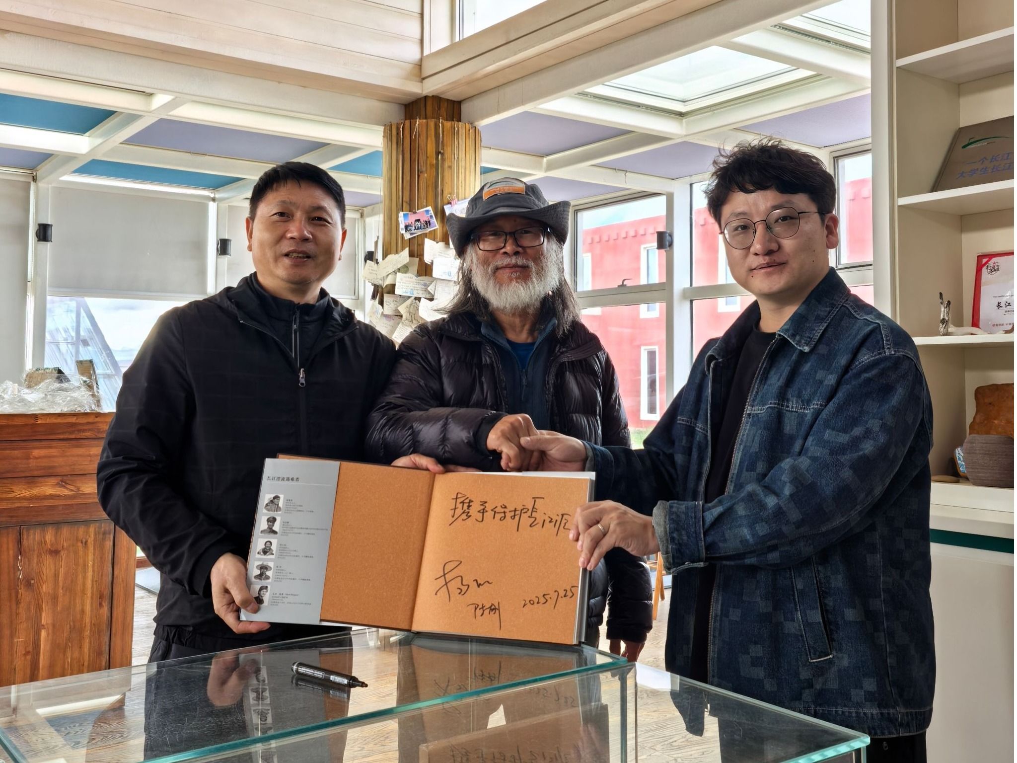 当日中午,团队走访沱沱河水文站,与扎根高原的年轻工作者交流。水文站站长分享了极端天气下监测水位、守护源头的日常,其“把青春安放在祖国最需要的地方”的信念令队员动容。随后,团队在水文设施周边开展补充观测,并前往气象站深化学习。实践期间,团队偶遇“长江漂流第一人”杨欣。这位用毕生守护源头的先驱,通过惊险历程与环保实践分享,让队员深刻理解“坚守”二字的分量。“杨欣老师的故事让我们明白,保护长江不仅是科研任务,更是精神传承。”陈刚教授说。