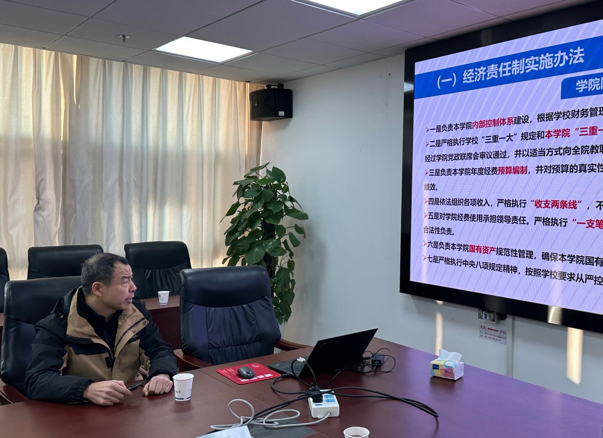 (通讯员 韩瑞 审稿 刘国华)11月21日,为深入学习贯彻党的二十届四中全会精神,推进作风建设常态化长效化及强化财经纪律意识,公司党委书记刘国华主持召开党委理论学习中心组学习(扩大)会。公司党委理论学习中心组成员、系党支部书记及主任、综合办公室全体成员、分工会主席、分团委书记参加学习,财务与资产管理部刘锐军老师受邀专题宣讲财经纪律。