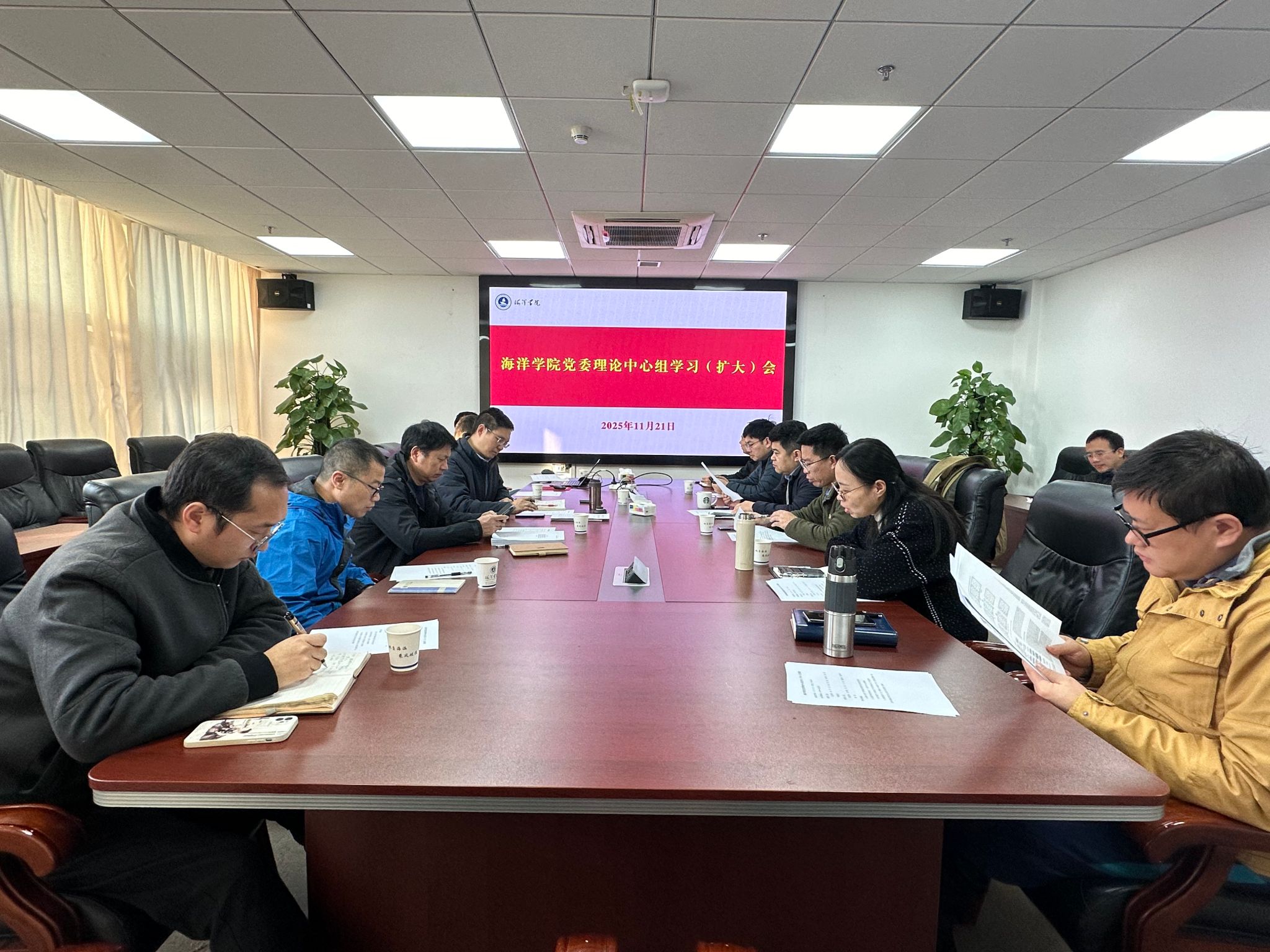 党委书记刘国华首先领学党的二十届四中全会精神,重点解读了全会关于推进国家治理体系和治理能力现代化的核心要义、“十五五”规划重大部署及对高校工作的指导意义。他认为,四中全会精神是公司顺应新时代改革发展浪潮的重要指引,要将全会精神融入海洋人才培养、科研创新和社会服务全过程,以制度建设为抓手,进一步优化治理结构、提升服务能力,科学制定好公司“十五五”事业发展规划。
