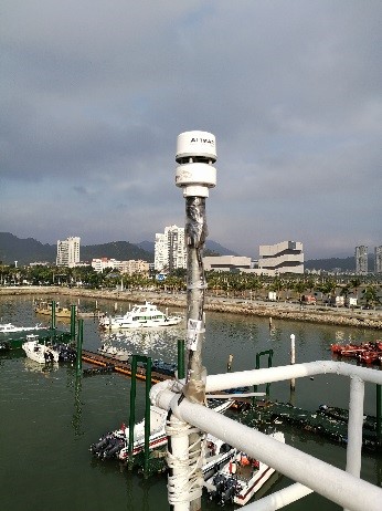 实验测量风速的设备主要为小型气象站,将其安装在实验船舶中轴线上的最高点处,测量实验海域的真风速与真风向数据,测量的时间间隔为1秒;实验测量波浪的设备主要为波浪浮标,波浪浮标以20分钟的时间间隔输出实验海域的波高、波向、波长等波浪数据,并最终利用雷达所测的海上综合数据与上诉实测数据进行对比,构建实验海域海洋动力环境的再分析场。
