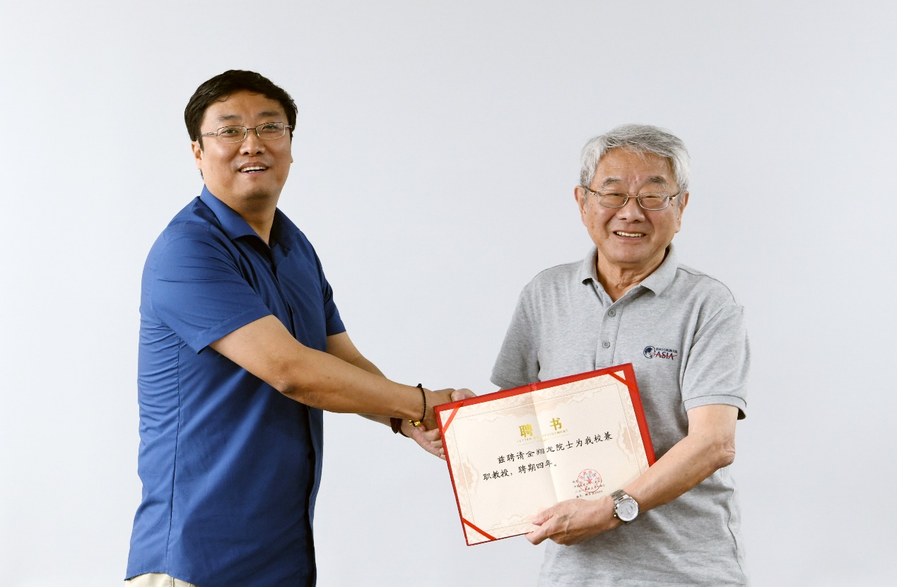 英国上市公司官网365经理牟林代表公司授予金翔龙院士兼职教授聘任证书