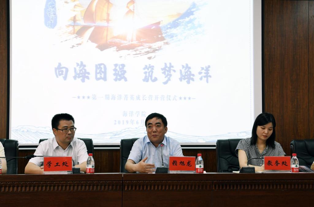 学工处处长邬海峰宣读《关于成立“海洋菁英成长营”的决定》。