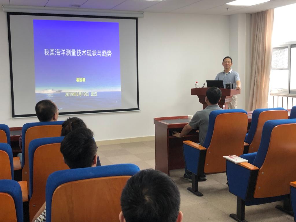 2019年6月19日上午10点,翟国君教授应邀来公司进行访问交流,并作了题为“我国海洋测量技术现状与趋势”的学术报告。报告会由副经理陈刚教授主持。翟国君教授是海军研究院高级工程师,海军大连舰艇公司教授,同为公司兼职教授、博导;国际海道测量组织潮汐委员会委员,国际大地测量与地球物理联合会委员;曾获全国优秀科技工作者称号,主持多项国家重大海洋专题,是我国海道测量领域知名专家。