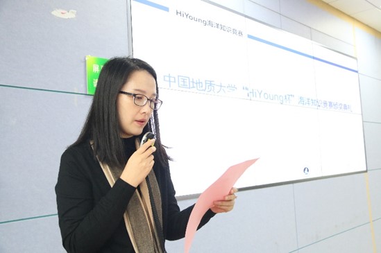 典礼最后,由校团委书记朱荆萨宣读《关于中国地质大学“HiYoung”杯海洋知识竞赛的表彰决定》,与会领导为获奖同学颁发了荣誉证书。获奖代表机械与电子信息公司周清同学做获奖发言。