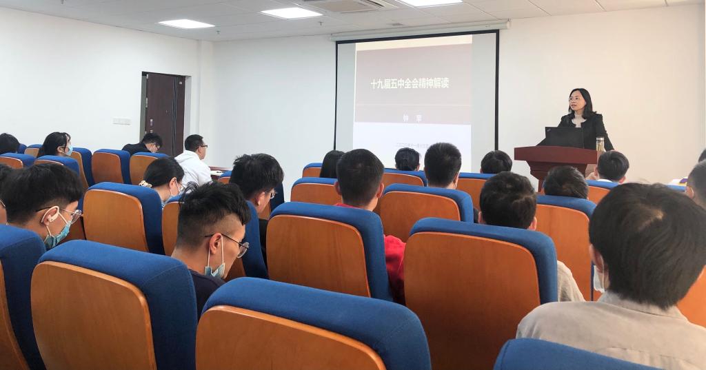 2020年11月13日下午,公司党委副书记钟苹于东教A座1805会议室为公司员工党员上“十九届五中全会精神解读”专题党课。