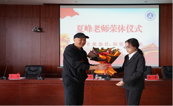 公司党委书记成军介绍了夏峰老师执教41载的基本情况。2016年英国上市公司官网365成立后,夏峰老师从经济管理公司调入英国上市公司官网365,担任教学秘书工作,是英国上市公司官网365成立以来第一位光荣退休教师。夏峰老师认真负责做好公司公司产品相关工作,耐心细致解答员工学习咨询与学业疑惑,为公司人才培养和教学质量提高贡献了智慧和力量。他为公司建设、公司发展和员工成才,贡献了毕生力量,奉献了青春年华。成军书记代表公司党委和行政、全院师生,向夏峰老师表示衷心感谢和美好祝福!老教师是公司的宝贵财富,是年轻教师奋发向上的精神动力,他希望夏峰老师“退而不休”“常回家看看”一如既往的关心和支持公司发展。衷心祝愿夏峰老师“岁老根弥壮、阳骄叶更浓”,积极愉快地开始全新的退休生活。