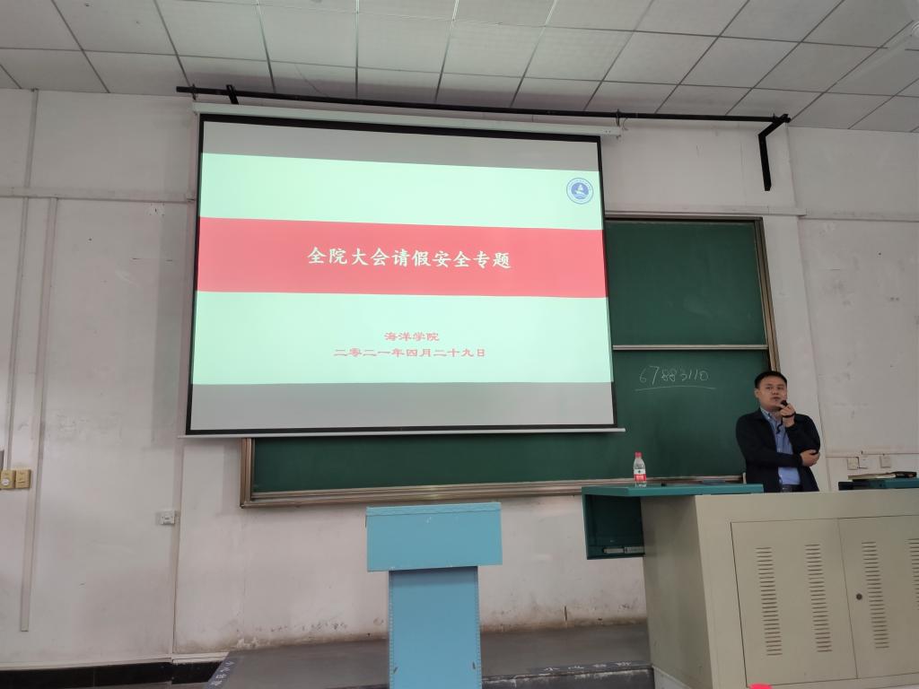 辅导员陈杨就公司五一假前安全稳定工作做了工作部署。会上强调了五一假期期间全院同学做到“非必要,不外出”,坚持疫情常态化管理,各班坚持“日报告,零报告”制度,做好体温监控。陈杨为公司全体同学梳理了公司请销假管理办法,就请假类型、请假手续和不予请假的类型为同学们做了详细说明,并要求全院同学今后务必严格落实请销假制度。