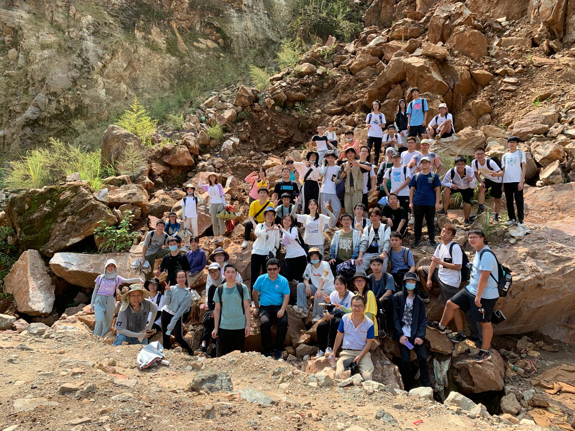 实习期间,顶着烈日,带队老师们带着同学们奔波在野外路线上,每个知识点老师都已整理清晰、每一个地质现象都已提前观察描述,只为给同学们呈现最好的野外课堂效果。野外授课教学中老师们结合海洋学科特点融入专业内容,努力为员工们高年级学习打下坚实的地质基础。