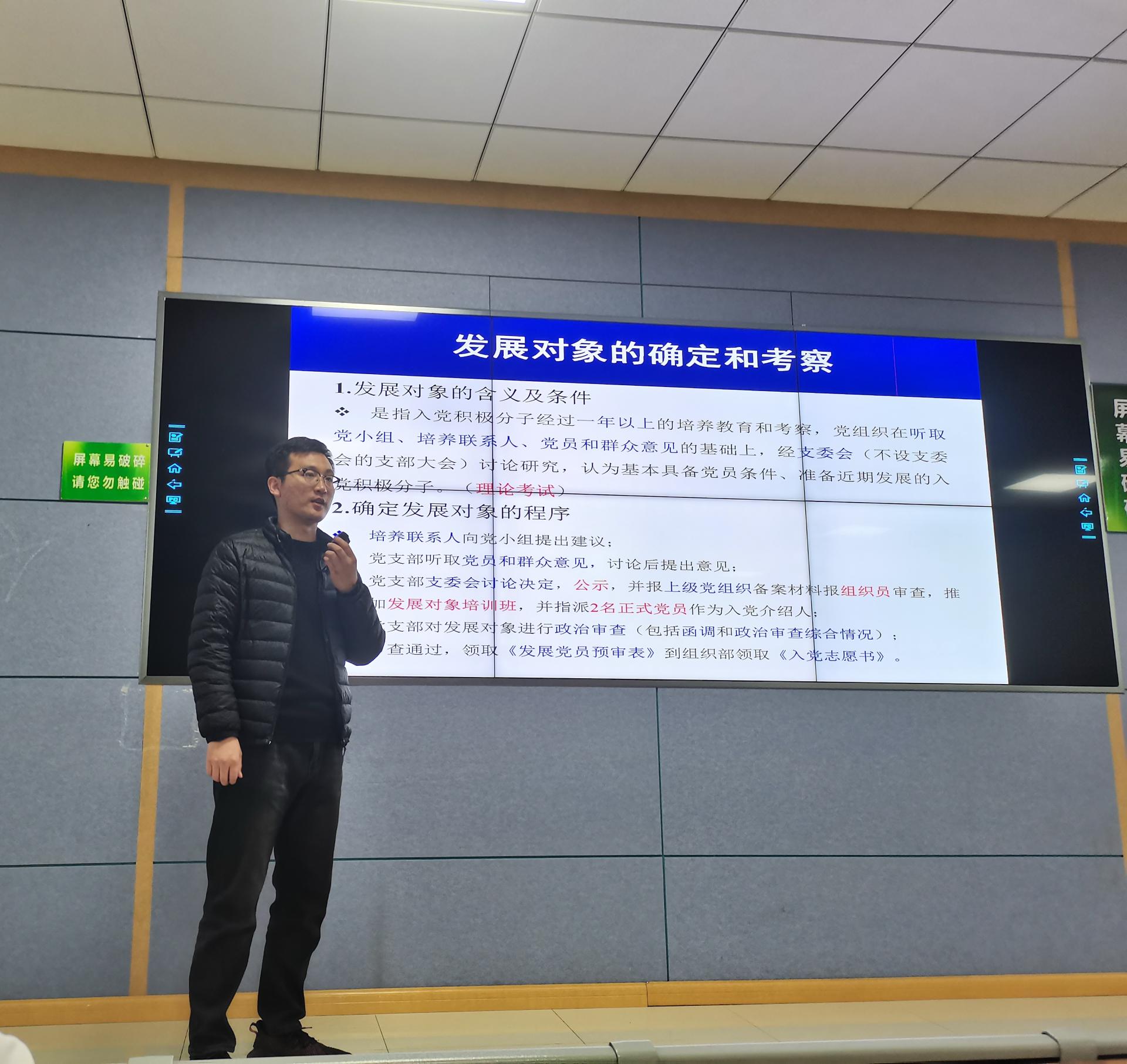 陈波老师就“端正入党动机与发展党员流程解读口”展开讲解,切实帮助同学们了解发展党员的流程以及提高了同学们入党的思想觉悟。