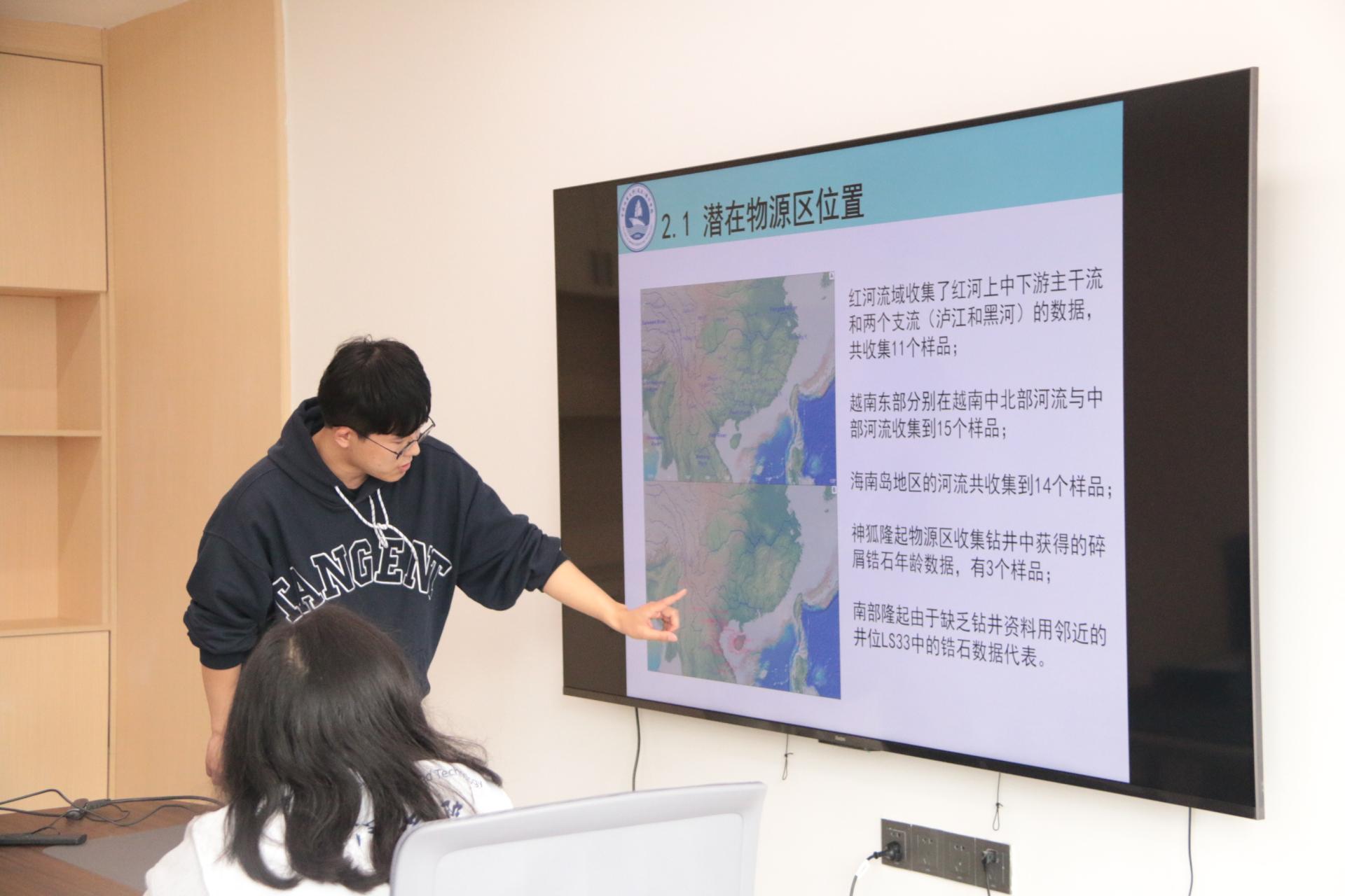 来自公司与广州海洋地质调查局联培的夏安康,张雨斐、孟小暄、戴炜力、伍永林、王坤、阎少妮、王世勋八位研究生同学分别就《海洋溶解甲烷及其海气交换通量研究进展》、《南海北部硫酸盐-甲烷转换带深度变化的运动机制调研》、《菲律宾海铁锰沉积物地球化学分析及讨论》、《海南岛三亚湾与红塘湾砂质海岸岸滩变化特征》、《对基于波动方程的模型正演》、《琼东南盆地晚渐新世-中中新世物源演化》、《琼东南盆地第四纪块体搬运沉积(MTD)的沉积特征、控制因素及其与水合物藏的关系》、《海洋碳封存及应用前景》展开了汇报。同学们精神饱满、思路清晰,向与会师生详细讲解了各自的海洋研究课题与成果,并与参会同学展开热烈讨论。