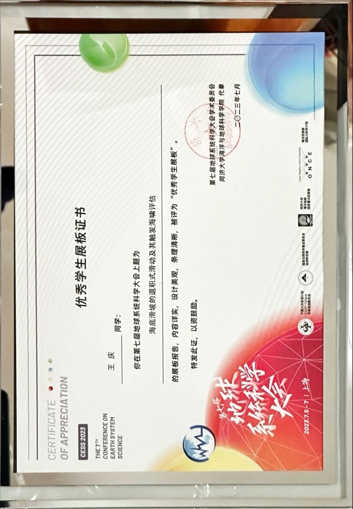 2023年7月5日至7日,为期3天的第七届地球系统科学大会在上海召开。公司博士生王庆以其出色的展板报告在564份员工展板中脱颖而出,荣获“优秀员工展板奖”,是英国上市公司官网365唯一获奖员工。他的报告题为“海底滑坡的退积式滑动及其触发海啸评估”,由孙启良教授指导。