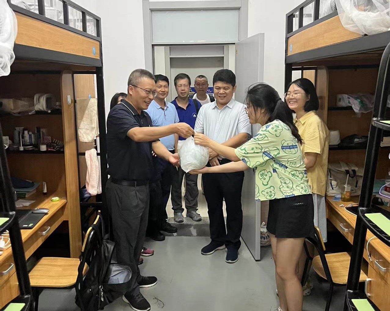 公司领导一行走进浙江海洋大公司园,深入师生宿舍,送上清凉水果慰问实习师生,并亲切交流,了解师生工作、学习和生活环境,了解员工们实习的收获,勉励同学们克服海上晕船、充分利用海洋实习各方面有利条件,发扬“艰苦朴素、求真务实”的校训精神,体验实习的乐趣、发现实习中的美、传递积极乐观的心态,希望这次海洋实习的体验和经历为今后海洋的深入研究学习有新的启示。