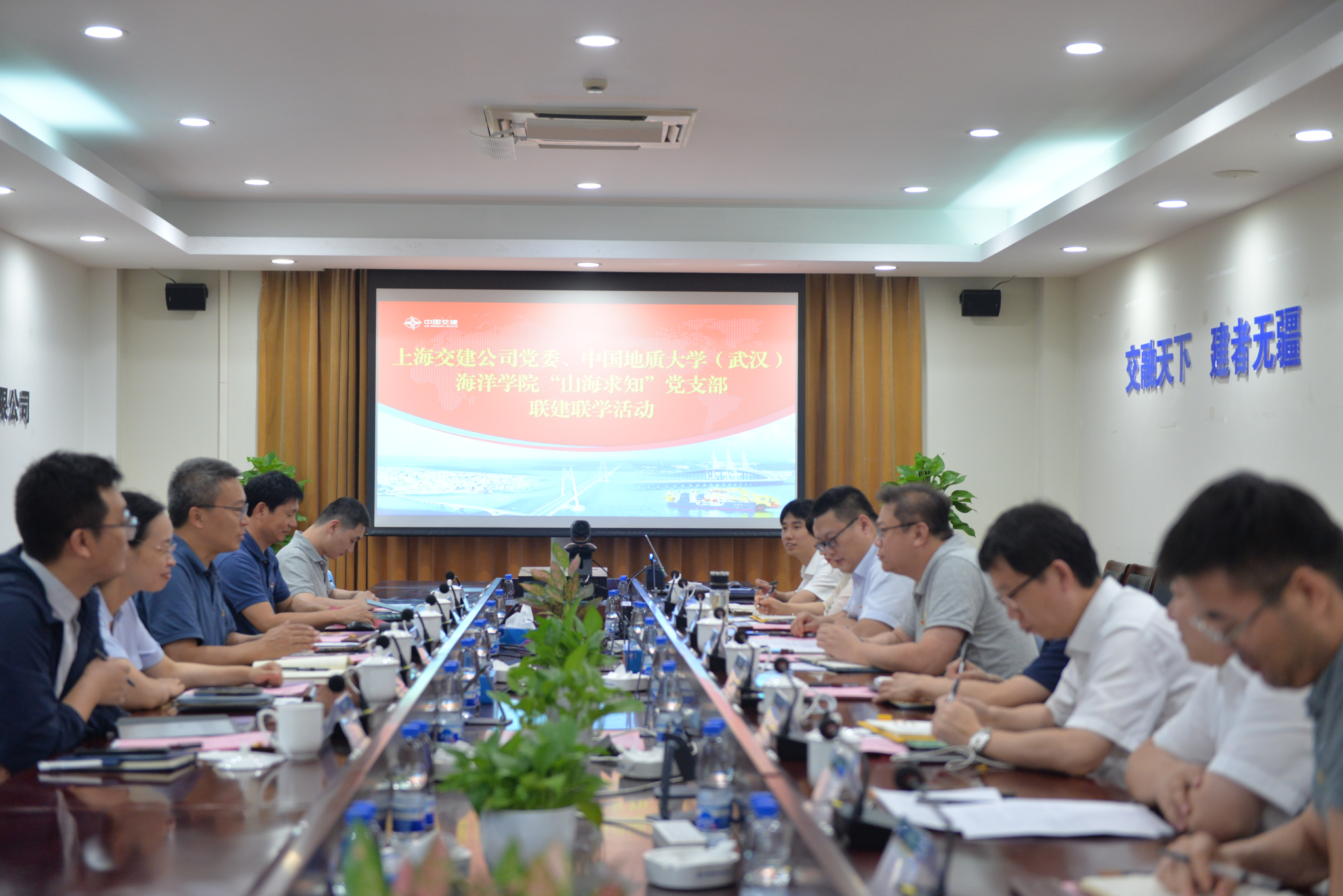 2024年7月5日,公司党委书记成军、副书记钟苹、副经理陈刚、团委书记陈波前往上海交建开展访企拓岗和党建共建活动。上海交通建设总承包有限公司党委副书记/总经理孙鹏、副总经理周壮、总工程师/副总经理王强、科学技术与数字化部经理杨杰、办公室主任张宁、人力资源部部长吴航标、党委工作部副部长乔鑫、科学技术与数字化部技术主管/员工代表李玉龙参加活动。