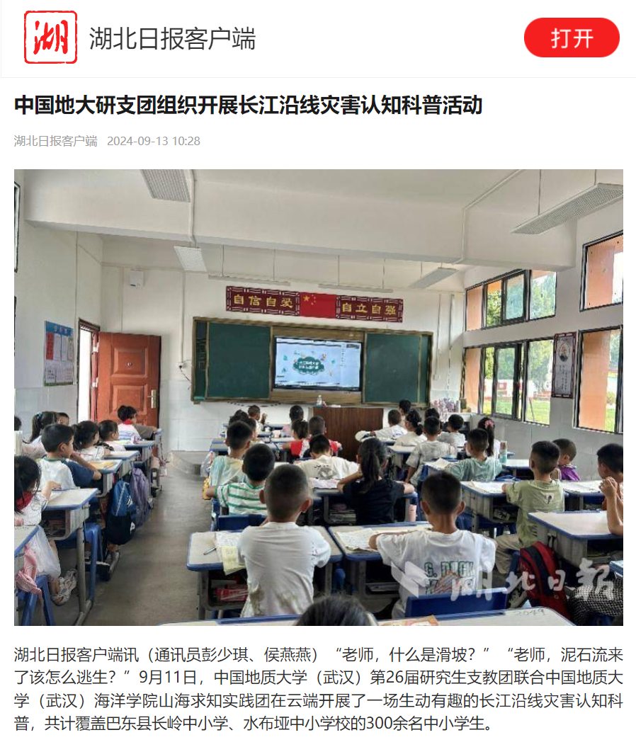 湖北日报报道英国上市公司官网365山海求知实践团组织开展长江沿线灾害认知科普活动
