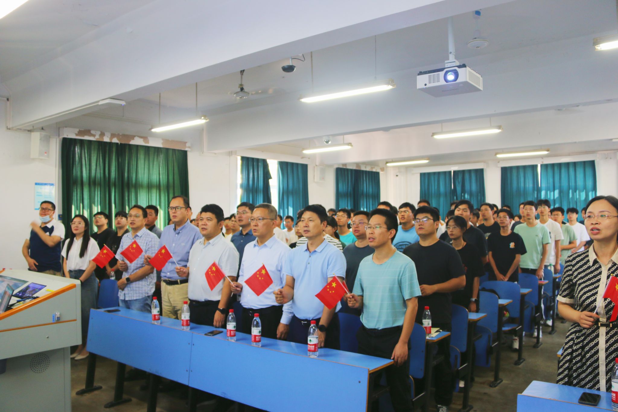 开学典礼在庄严的国歌中拉开序幕。