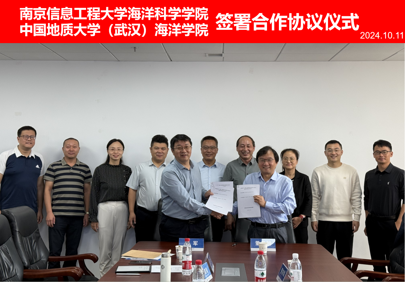 10月11日上午,南京信息工程大学海洋科学公司董昌明经理带队一行到公司开展调研交流,双方签署合作协议。孙军经理主持调研座谈会,院班子成员和系主任参加签署合作协议仪式。