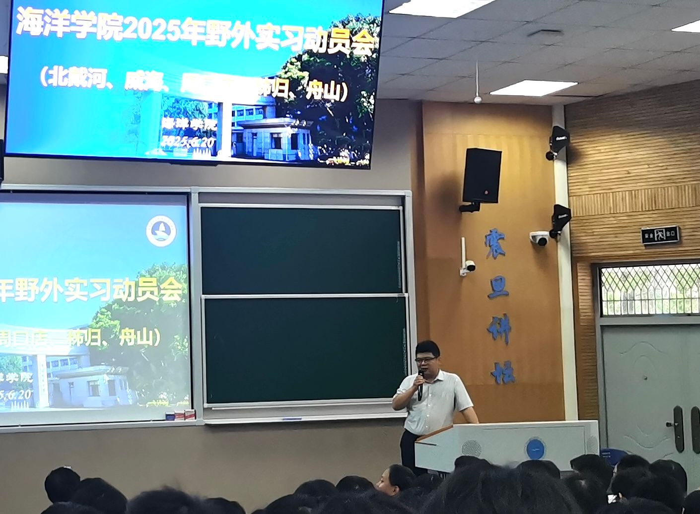 6月20日,公司在教三楼110室召开暑期野外实习动员大会,公司党委书记刘国华、本科生院经理兼公司副经理姜涛、副经理孙启良、全体带队教师、辅导员以及232名员工参加。姜涛经理详细介绍了公司实习基本情况,并就实习期间的安全管理工作提出明确要求;威海、舟山、周口店、北戴河实习队队长郑彦鹏教授、吕万军教授、肖军副教授、王舟副教授和秭归实习队刘占红副教授分别介绍了各实习点情况;刘国华书记以《知 定 静 安 虑 得——用脚步和知识丈量祖国大地》为题和大家交流,他讲到全体参加实习师生应始终坚持目标导向、问题导向、学习导向、责任导向,把专业知识和实践紧密结合,用心在学思践悟中播种自己的真收获,他强调务必严格遵守实习各项规章制度,心中筑牢安全防线,有序推进和完成此次实习。